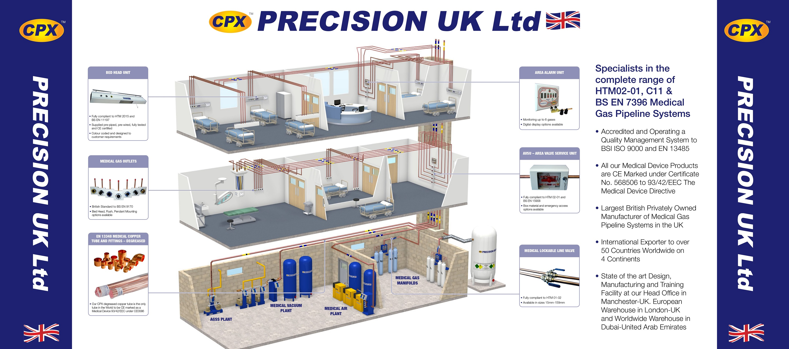 تصميم، توريد، تركيب، اختبار وصيانة شبكات الغازات الطبية لمتطلبات الكود العالمي HTM201 & 2022